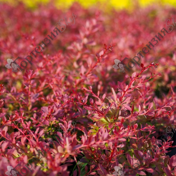 Барбарис тунберга Оранж Карпет (Berberis 'Orange Carpet') кустарник с колючей, раскидистой, кроной высотой до 50-70 см и шириной до100 см. Листья красивой овальной формы, красно-оранжевого цвета в тени окраска листа становится зеленой. Цветет в мае мелкими желтыми цветами в кистевидных соцветиях, но благодаря ярким оранжевым листьям цветы остаются неприметными. Плоды ярко красные, овальные созревают в августе-сентябре, остаются украшением сада почти до весны. Барбарис тунберга хорошо подходит для оформления живой изгороди, бордюров, в групповых и одиночных посадках. Морозостойкость -34С.